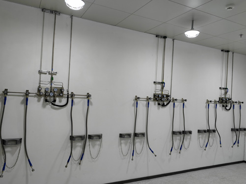 1.氣瓶間內經濟壓力調理面版與實驗所室內的的氣路電子設備間采用SS316LBA管展開連到,管路內表層滑膩度為Ra<0.4umBA級管路。